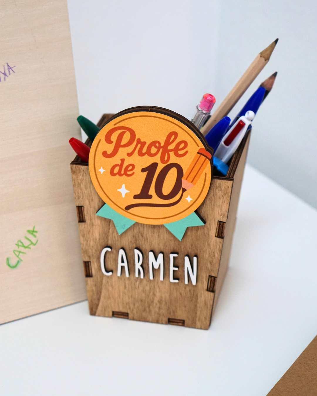Porta Lápices de Madera Personalizado diseño Profe: El Regalo Ideal para los mejores profes