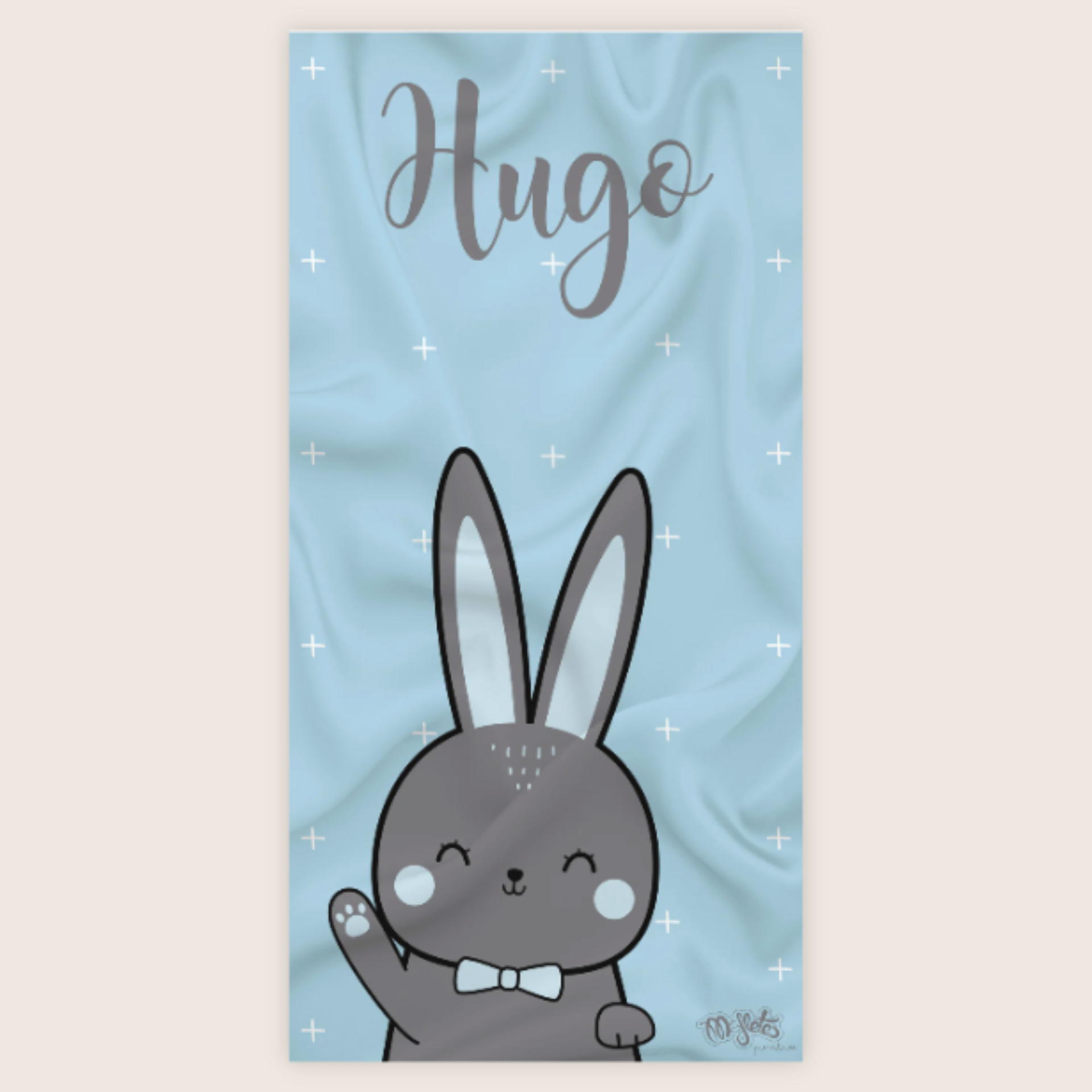 - Personalización: La toalla personalizada Conejo Azul es una forma única de agregar un toque personal a la hora del baño de tu hijo/hija.
